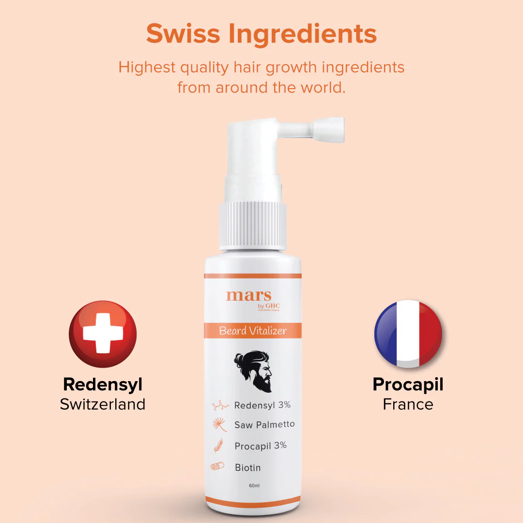 - Beard growth vitalizer is specially designed to enhance microcirculation around the existing beard hair follicles and provides ample nourishment to the follicles.Â