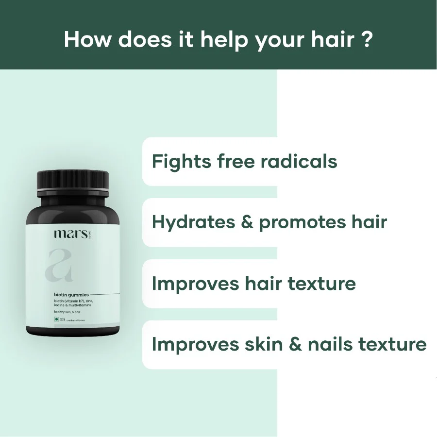 Mars by GHC Biotin Gummies is enriched with highly potent ingredients that not only provide beauty benefits but also help glucose enter cells for energy production, thereby preventing fatigue and reducing the risk of depression.