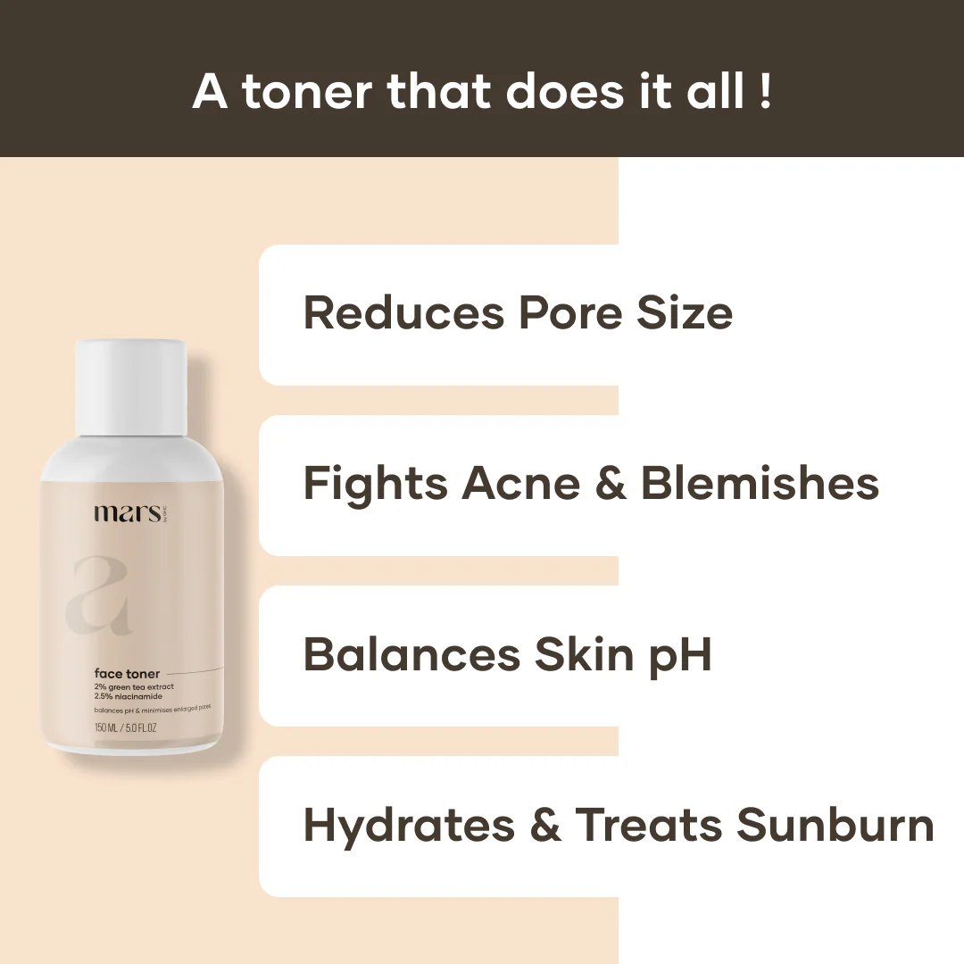 Introducing Mars Face Toner with 2% Green Tea Extract & 2.5% Niacinamide that provides instant freshness & sweeps away dead skin cells.